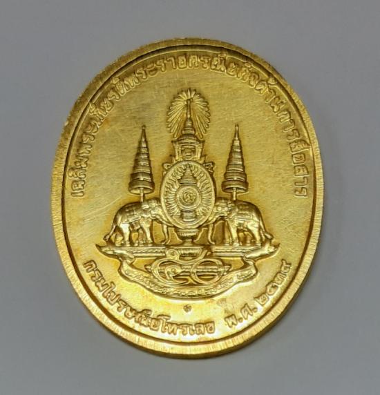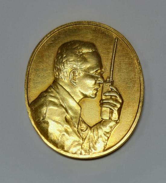 เหรียญในหลวงทรงวอร์ ปี 39 เนื้อทองแดง กะไหล่ทอง กรมไปรษณีย์โทรเลข |