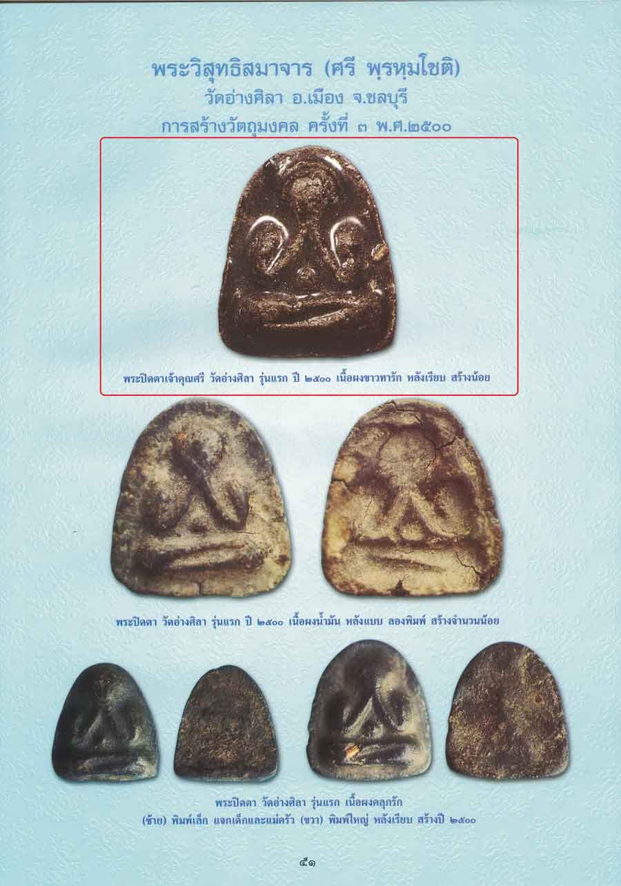 พระปิดตาหลังเรียบ เนื้อผงน้ำมัน รุ่นแรก ปี2500 เจ้าคุณศรี วัดอ่างศิลา จ.ชลบุรี
