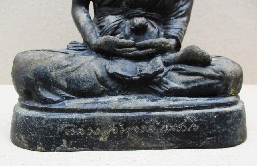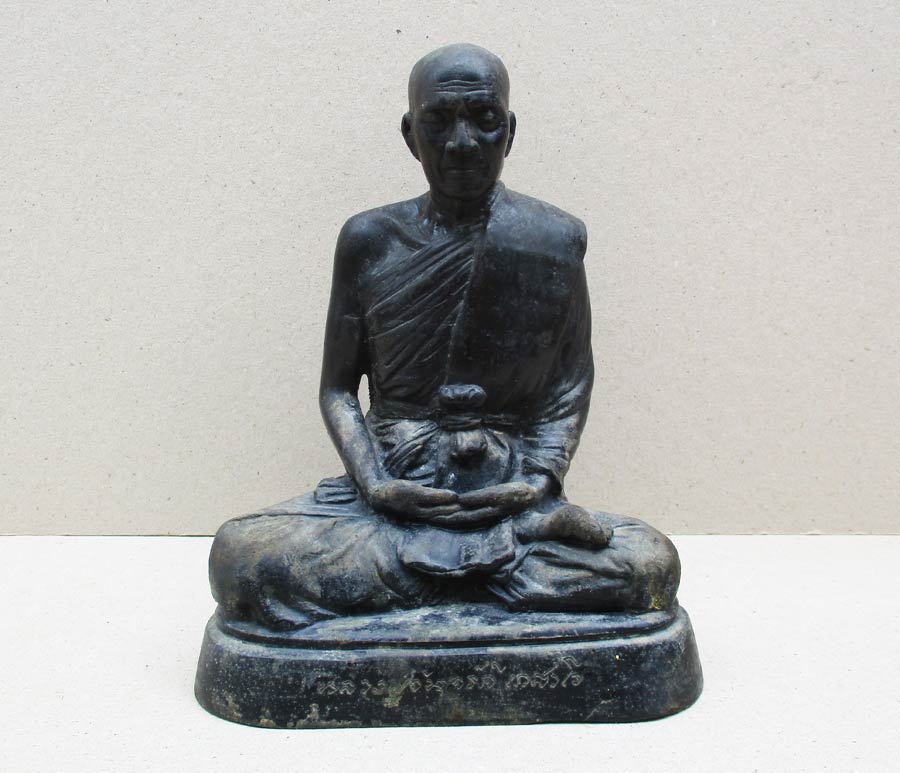พระบูชาหลวงปู่จันทร์ดี เกสาโร วัดหินป่าเกิ้ง จ.ขอนแก่น รุ่นแรก พ.ศ.2517 หน้าตัก 5 นิ้ว เนื้อโลหะรมดำมันปู ผิวแห้งหิ้ง !!