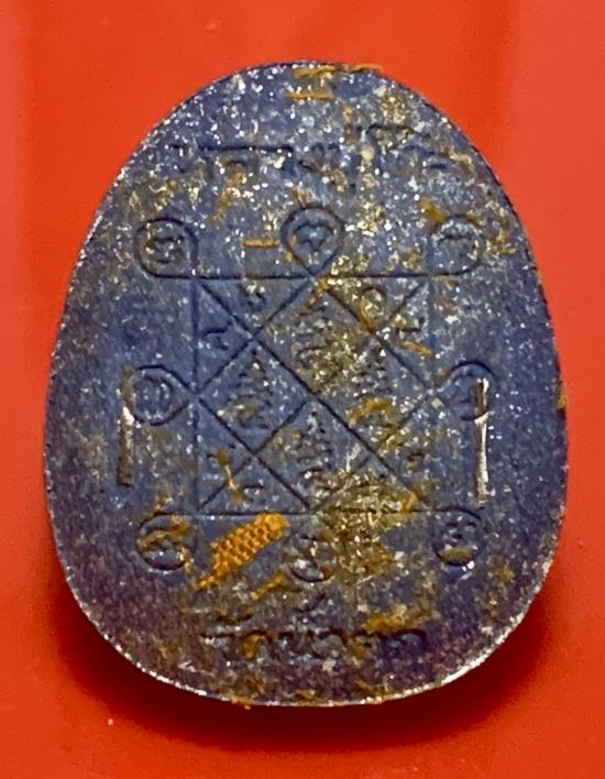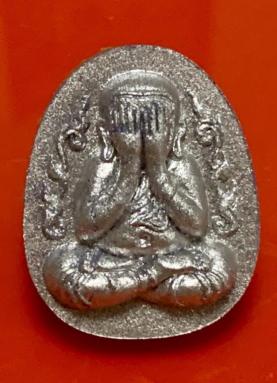 พระปิดตากนกข้าง หลวงพ่อแอ่ม วัดน้ำตก จ.กาญจนบุรี เนื้อผงเงินไหลมาปัดบรอนเงิน หมายเลข 100