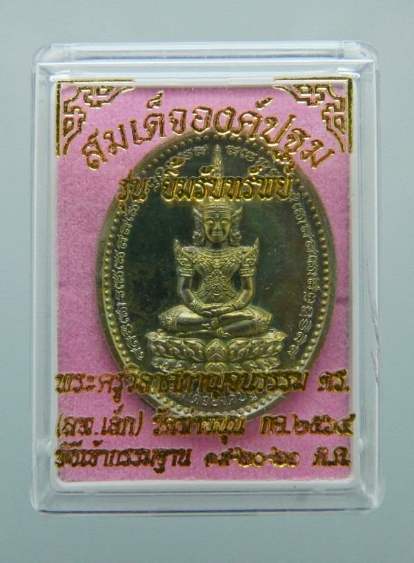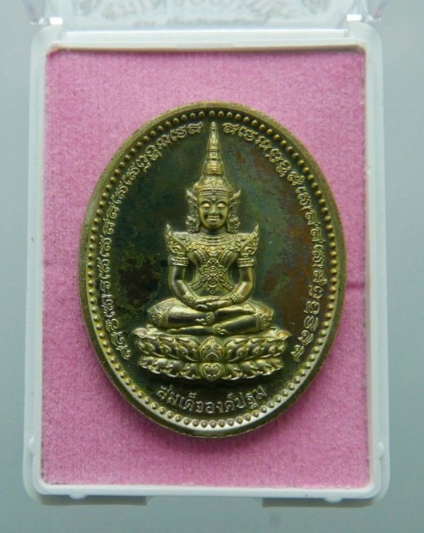 ชื่อพระเครื่อง สมเด็จองค์ปฐม รุ่นยิ้มรับทรัพย์ เนื้อเขียวเหล็กไหล พิมพ์ใหญ่ หลวงพ่อเล็ก วัดท่าขนุน เลข 3877