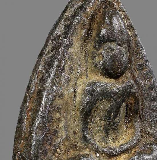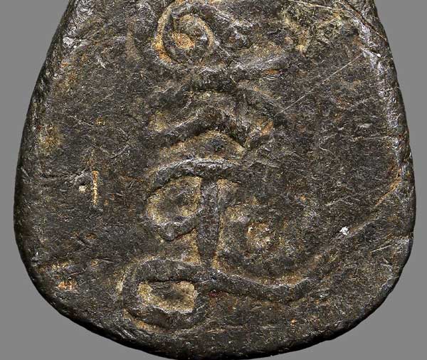 เหรียญหล่อโบราณ พิมพ์หยดน้ำ หละงยันต์ เนื้อตะกั่วเก่า(ไม่ทราบที่) ขนาด ฐาน 1.9 cm สูง 2.7 cm |