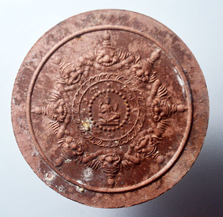 พระผงสุริยันต์ จันทรา รุ่น 2 ปี 49 ท่านสรรเพชร จัดสร้าง รูปแบบย้อนยุค พิมพ์ 4 เซน เนื้อผงว่านแดง หลัง ยันต์เอียง |