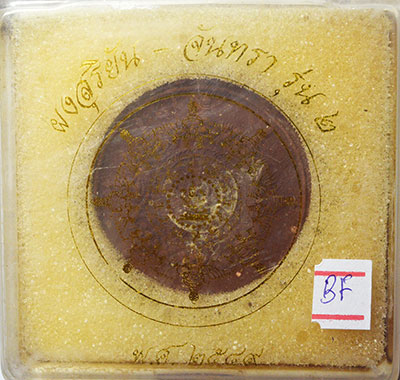 พระผงสุริยันต์ จันทรา รุ่น 2 ปี 49 ท่านสรรเพชร จัดสร้าง รูปแบบย้อนยุค พิมพ์ 4 เซน เนื้อผงว่านแดง หลัง ยันต์เอียง |