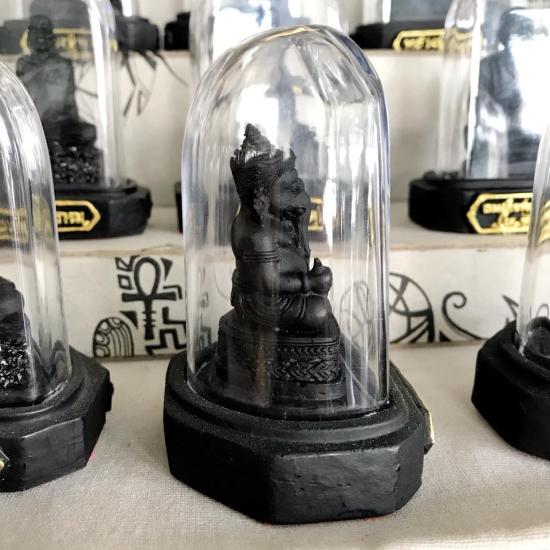 พระนิลพระพิฆเนศ ตั้งหน้ารถ ขนาดหน้าตัก1.5นิ้ว /ฐานกว้าง7ซม. /สูง9.5ซม.พร้อมครอบแก้ว