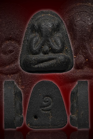 1 ใน 509 องค์ พระปิดตาหลวงปู่เฮี้ยง วัดป่า พิมพ์หลังอุสั้น มีจุด เนื้อผงคลุกรัก ปี 2500 จ.ชลบุรี พร้อมบัตรรับรอง G