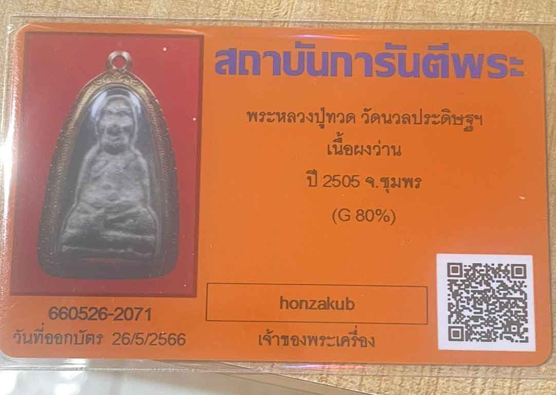 พระหลวงปู่ทวด วัดนวลประดิษฐ์ ปี 2505 เลี่ยมทอง พร้อมบัตรรับรอง
