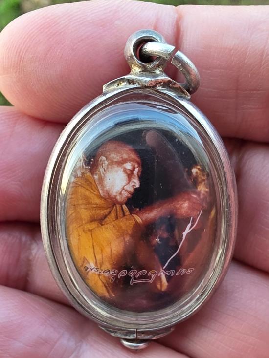 ล็อกเก็ตรุ่นแรก พ่อท่านหวน(พระครูอดุลคุณาธาร) วัดโคกหล่อ หลังอุดว่านขาว "เลี่ยมเงินผ่าหวายสวยๆกันน้ำพร้อมใช้"