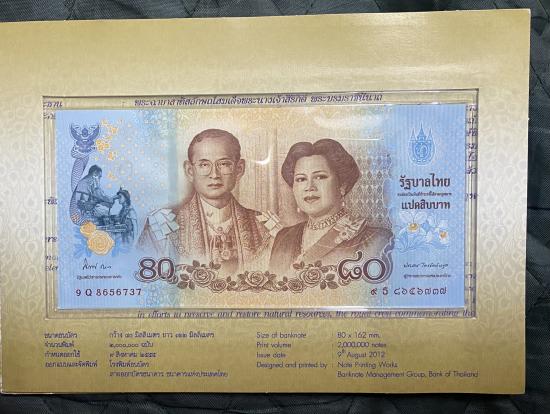 ธนบัตรเฉลิมพระชนมพรรษา 12 สิงหาคม 2555 ราคา 80 บาท สภาพดี |