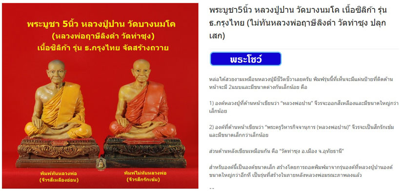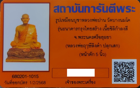 พระบูชา5นิ้ว หลวงปู่ปาน วัดบางนมโค เนื้อซิลิก้า รุ่น ธ.กรุงไทย (ทันหลวงพ่อฤาษีลิงดำ วัดท่าซุง ปลุกเสก) ตัวจริง! + บัตรรับรอง GPRA