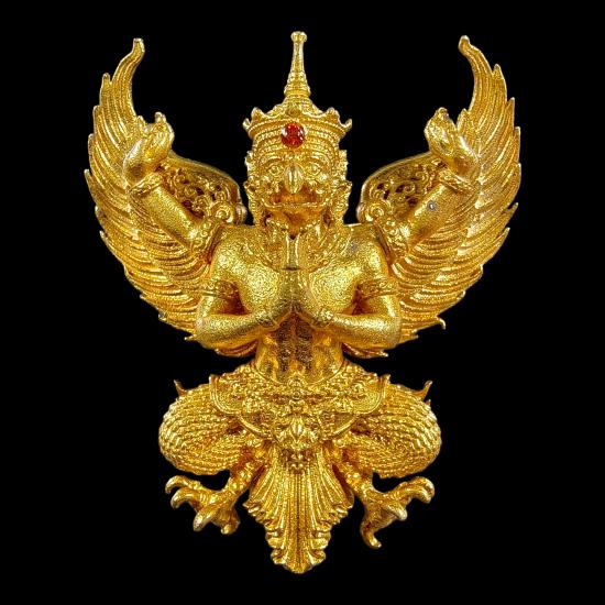 พญาครุฑทรงฤทธิ์ รุ่น โคตรมหาเศรษฐี วัดพระมหาธาตุ วรมหาวิหาร อ.เมือง จ.นครศรีธรรมราช เนื้อชนวนทองพระนคร หมายเลข ๑๘๙๘ พร้อมกล่องเดิม |