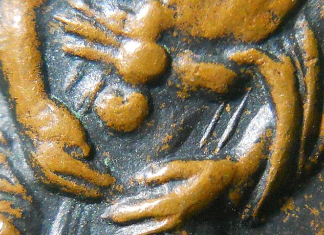 เหรียญแม้ผ่านการใช้มาแล้ว แต่หน้าตาหลวงพ่อยังชัด ใต้รัดประคดด้านซ้ายหลวงพ่อจะเห็นเส้น 2 ชายชัดเจน