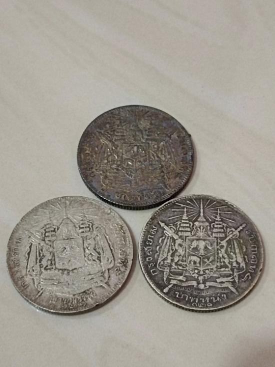 เหรียญบาท ร.5 ไม่มีร.ศ.สวยมาก1เหรียญ, ร.ศ.120 1เหรียญ และ ร.ศ.121 1เหรียญ รวม3เหรียญ