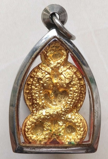 นาคเกี้ยว มหาเสน่ห์ กะไหล่ทอง ตอกโค๊ต เลี่ยมตลับสแตนเลส ไม่ทราบที่