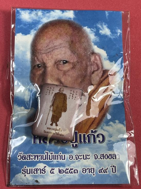 ล็อกเก็ต รุ่น เสาร์ ๕ หลวงปู่แก้ว วัดสะพานไม้แก่น จ. สงขลา ด้านหลัง อุดมวลสารมงคล ฝังตะกรุด จีวร และ เกศา สร้างน้อย 499 องค์ ปี 2553