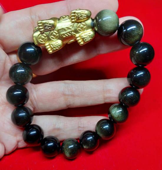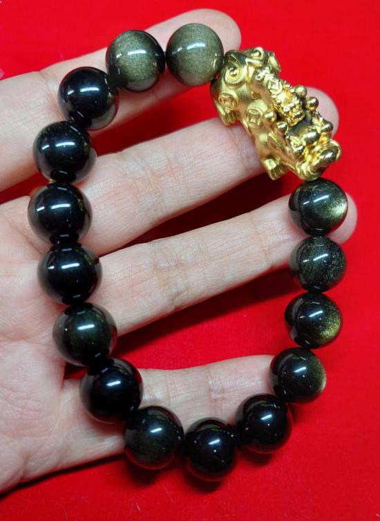 ***วัดใจ***สร้อยข้อมือปี่เซี๊ยะเงินแท้ชุบทอง (ตัวใหญ่) หินสะท้อนแสง หินนำโชค13 มิล |