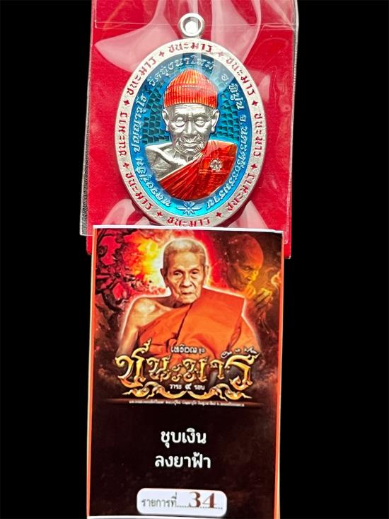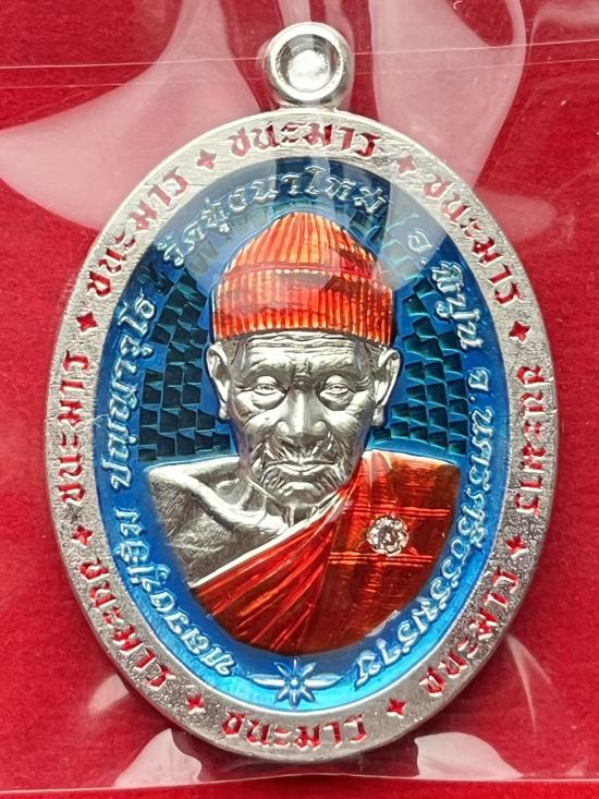 ..เหรียญ รุ่น ชนะมาร หลวงปู่อิ่ม ปัญญาวุโธ วัดทุ่งนาใหม่ จ.นครศรีธรรมราช เนื้อชุบเงินลงยาฟ้า ฝังเพชรสังฆาฏิ No.222 พร้อมกล่องเดิมครับ