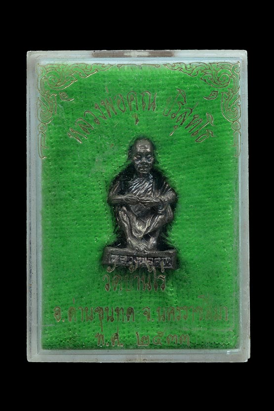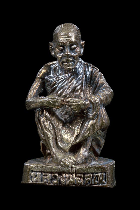 รูปหล่อนั่งบริกรรมคาถาชักประคำ ( เนื้อโลหะผสม ) พ.ศ.2533 ( ก ล่องเดิม )
