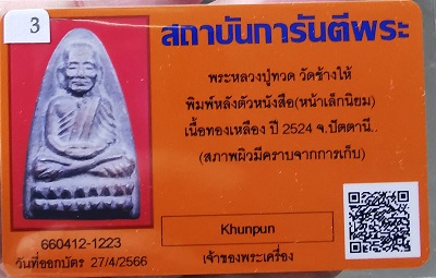 หลวงปู่ทวด หลังหนังสือ ปี2524 หน้าเล็ก นิยม หายาก สวยเดิม พร้อมบัตร
