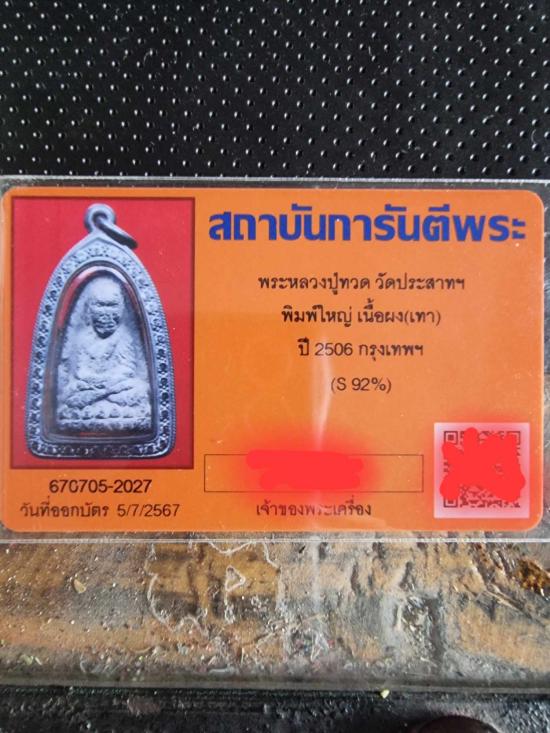 หลวงปู่ทวดวัดประสาทฯ พิมพ์ใหญ่ 2506 เนื้อลังเม้ง บล็อคลังเม้ง เลี่ยมเงินเก่า มาพร้อมบัตรฯ ****กรอบพระได้นำไปชุปไมคอนมาคับเป็นสีทอง
