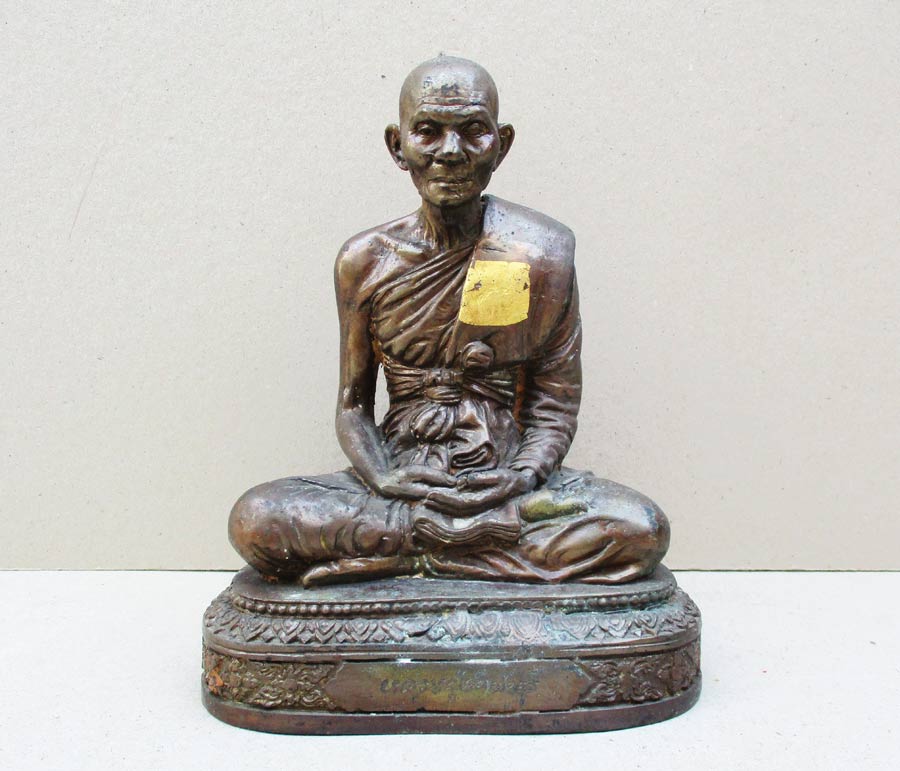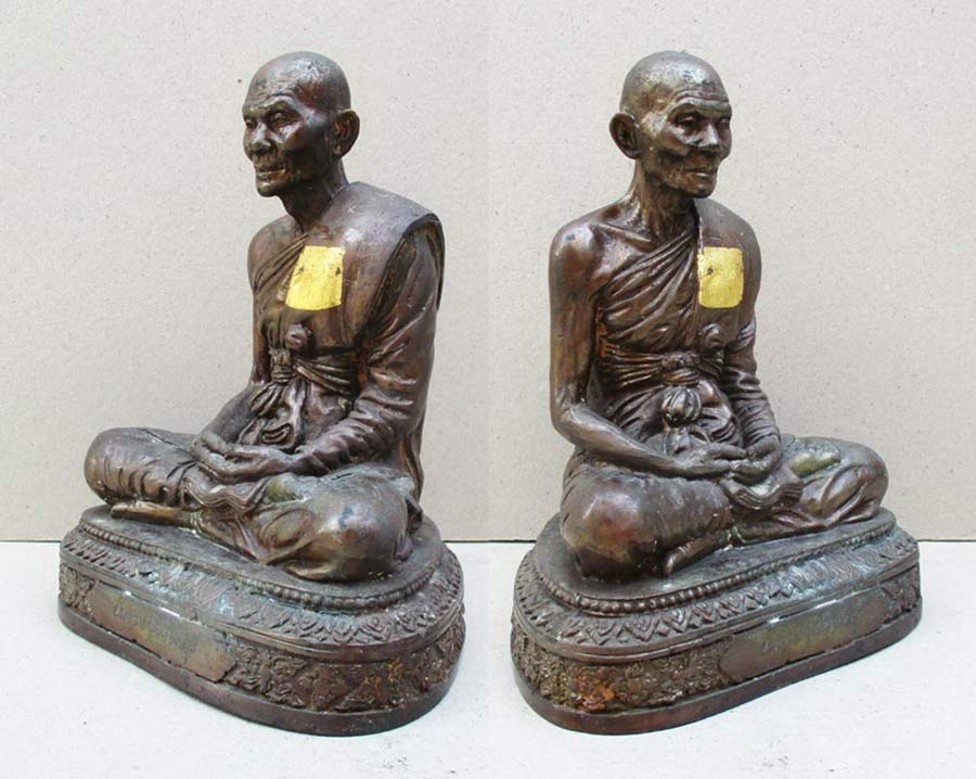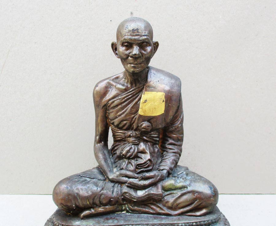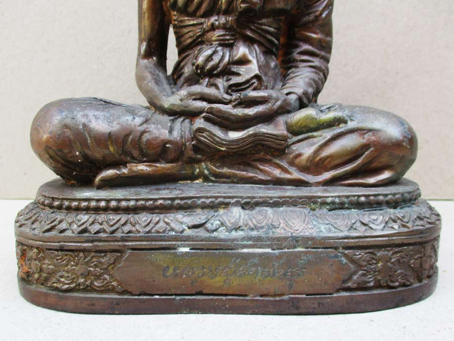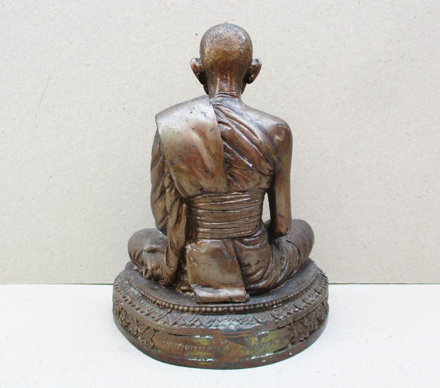 หลวงปู่คำพันธุ์ โฆษปัญโญ วัดธาตุมหาชัย จ.นครพนม รุ่นมหาชัยมงคล พ.ศ.2535 เนื้อโลหะรมมันปูผิวหิ้ง หน้าตัก 5 นิ้ว ตอกโค๊ต ตอกเลข ใต้ฐานอุดปูนฝังวัตถุมงคล !!