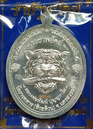 เหรียญหลวงพ่อพัฒน์ วัดห้วยด้วน "รุ่นราชาพยัคฆ์ปี" 2563 เนื้อเงินลายเสือ ลงยาแดง ลงยาจีวร เลขสวย |
