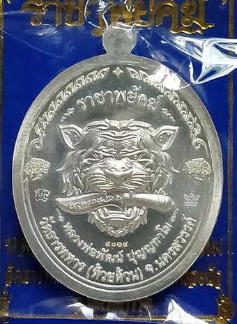 เหรียญหลวงพ่อพัฒน์ วัดห้วยด้วน "รุ่นราชาพยัคฆ์ปี" 2563 เนื้อเงินลายเสือ ลงยาน้ำเงิน ลงยาจีวร เลขสวย |