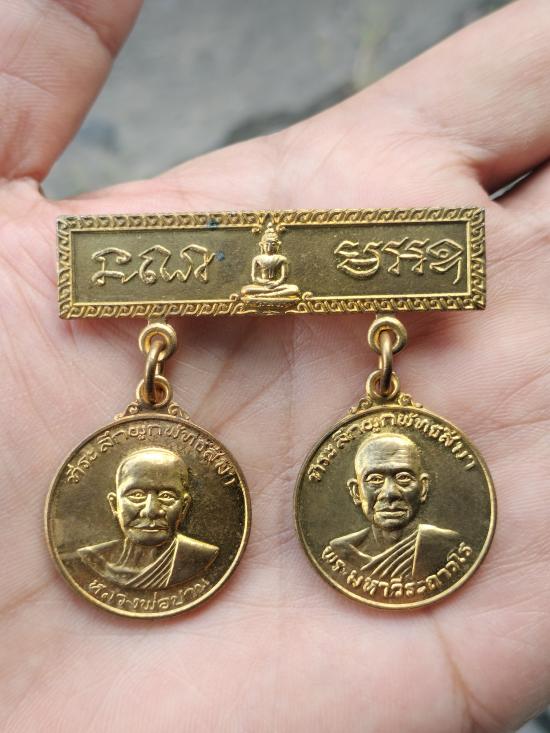 ((วัดใจ)) เหรียญคู่ที่ระลึกผูกพัทธสีมาปี 2520 หลวงพ่อฤาษีลิงดำ วัดท่าซุง
