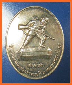 เหรียญกะไหล่ทองพิมพ์ใหญ่ ๓x๔ ซม. พ่อจ่าดำ (อนุสาวรีย์วีรไทย) ค่ายวชิราวุธ นครศรีฯ สถาปนา ร.๑๕ พัน๒. ครบ๙๐ปี ๒๕๔๙ หลัง พร.(เพชรรัตน์) พิธีใหญ่ รับประกันครับ