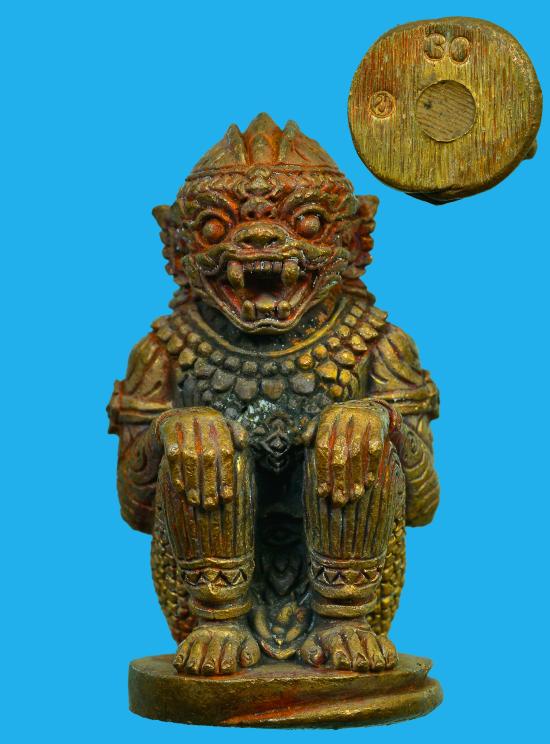 หนุมานชนะมาร เนื้อทองแดงผสมชนวน อุดผงพรายกุมาร เลข 30 สร้าง ๙๙๙ ตน หลวงปู่เขียว ปี ๒๕๕๘ |