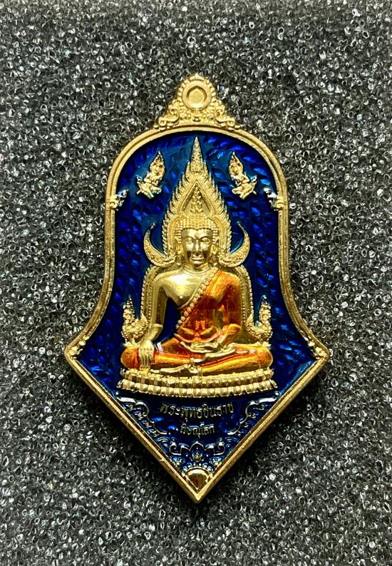 เหรียญจำปีสองแคว พระพุทธชินราชหลังท้าวเวสสุวรรณ "เนื้อทองระฆังลงยาสีน้ำเงินจีวรเหลือง" พิธีเสกพระราชวังจันทน์ |