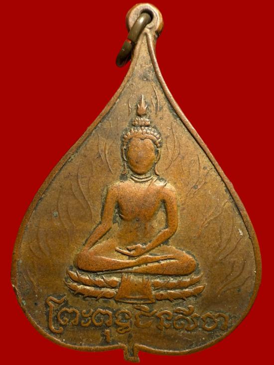 เหรียญใบโพธิ์พระพุทธชินราช-พระพุทธชินสีห์ เจ้าคุณเฒ่า(แจ่ม)วัดมกุฏกษัตริยาราม ปี๒๔๗๘ เนื้อทองแดง ข้างเลื่อยหายาก