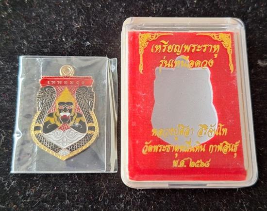 เหรียญพระราหูอมจันทร์ หลวงปู่ศิลา เมตตาอธิษฐานจิต รุ่นเหนือดวง เนื้ออัลปาก้าลงยา No.186 |