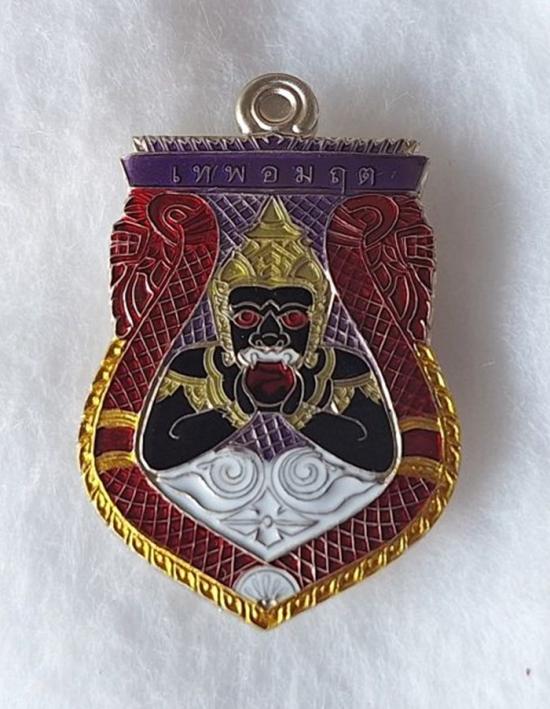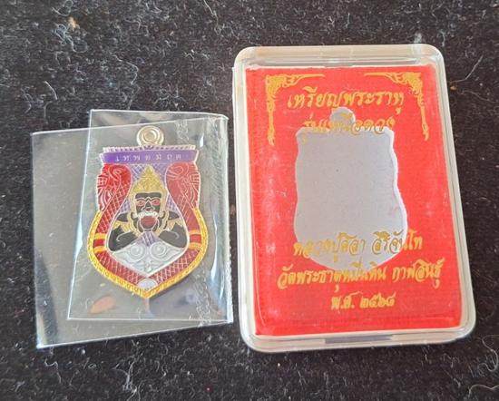เหรียญพระราหูอมจันทร์ รุ่นเหนือดวง เนื้ออัลปาก้าลงยา ตอกเลข+ตอกโค๊ต พร้อมกล่อง