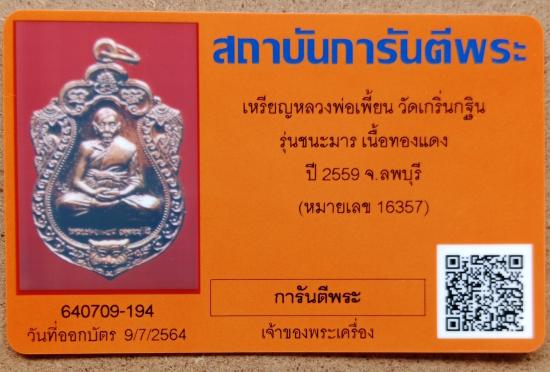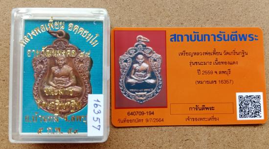 เหรียญหลวงพ่อเพี้ยน วัดเกริ่นกฐิน จ.ลพบุรี ปี2559 รุ่นชนะมาร เนื้อทองแดง หมายเลข กล่องเดิม พร้อมบัตรรับรอง ตามรูป