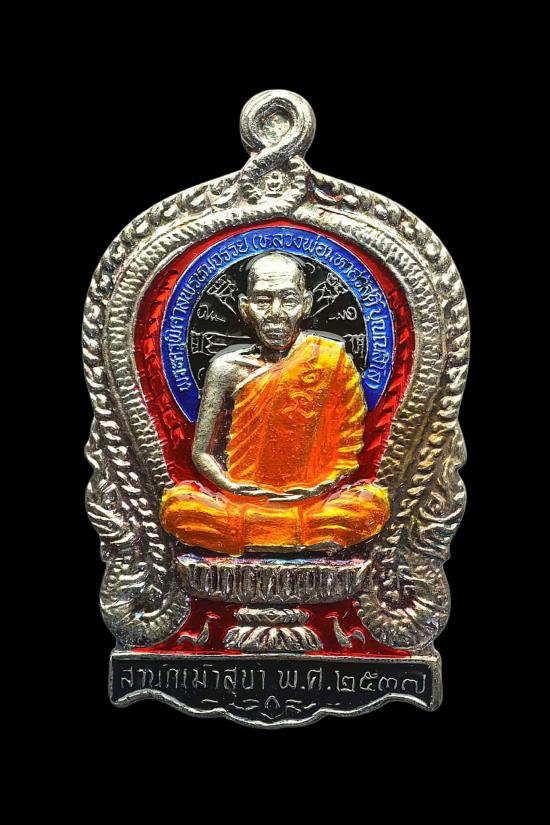 เหรียญพิมพ์นั่งพาน รุ่น 1 หลวงพ่อสวัสดิ์ ปุณณสีโล เนื้อเงินลงยาสีดำ หมายเลข 4 วัดใจเคาะแรก!!!