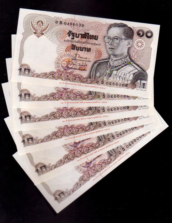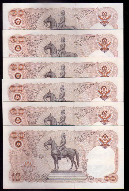 ## ธนบัตร 10 บาท ## ทรงม้า ## 120 ปี กระทรวง ## เรียงเลข 6 ฉบับ ## แกะแหนบ ## ไม่ผ่านการใช้