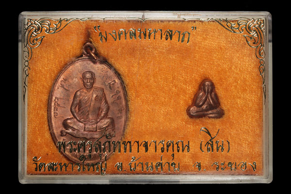 พระชุด เหรียญมงคลมหาลาภ เเละ ปิดตา หลวงพ่อสิน วัดละหารใหญ่ ปี 2537 เนื้อทองแดง หมายเลข 2417 |