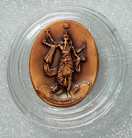 ~~เหรียญพระพิฆเนศ (workpoint) ปางมหาเทพ รุ่นเฉลิมพระเกียรติ 80พรรษา ในหลวง รัชกาลที่9 ปี50 สร้างโดย คุณปัญญา บ.เวิร์คพอยท์ - เลขสวยๆ 52357 --พร้อมตลับเดิมสวยใส