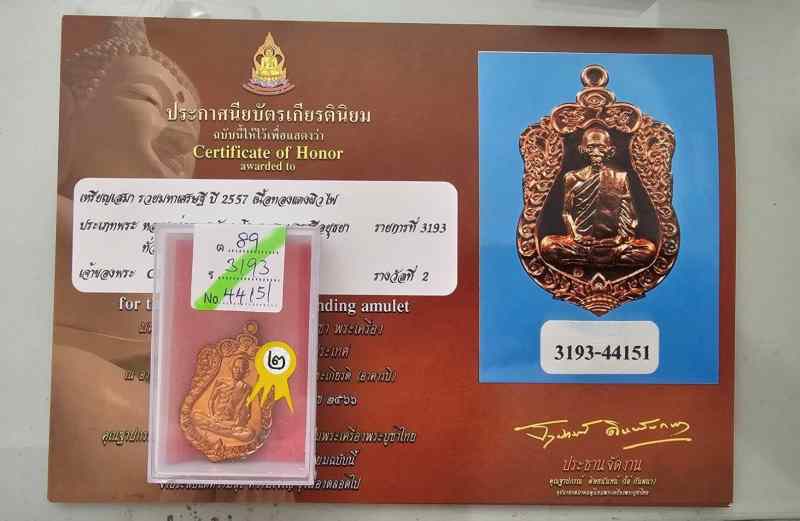 หลวงพ่อรวย วัดตะโก จ.อยุธยา เสมา รวยมหาเศรษฐี ปี 2557 เนื้อทองแดงผิวไฟ ตอกโค๊ดเลข 383 พร้อมรางวัลที่ 2 งานประกวด |