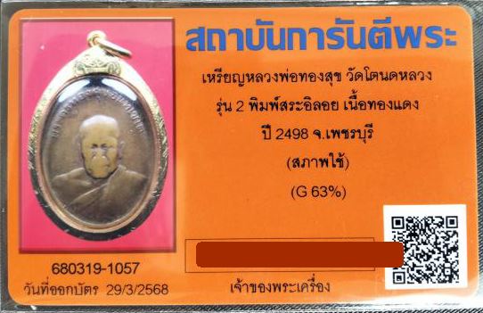 หลวงพ่อทองสุข ทองศุข วัดโตนดหลวง เพชรบุรี รุ่น2 อิติด พร้องเลี่ยมทอง