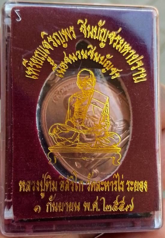 เคาะเดียวแดง.....เหรียเจริพร ชินบัชรมหาปราบ หลวงปู่ทิม วัดละหารไร่จังหวัดระยอง ปี 57 เนื้อทองแดง ตอกโค๊ตและ Number 18105 พร้อมกล่องเดิมสภาพสวย |