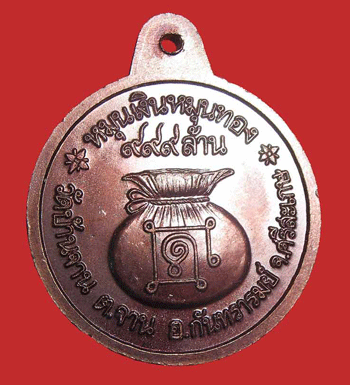 เหรียญหมุนเงินหมุนทอง หลวงปู่หมุน เนื้อทองแดง รุ่นเจริญลาภ ปี2542 บล็อคประคำ 19เม็ด นิยมสุด พร้อมบัตรรับรองครับ