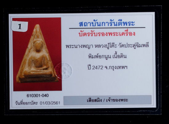 พระนางพญาเนื้อดิน หลวงปู่โต๊ะ ปี 2472 พิมพ์อกนูน