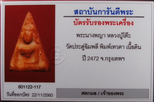 พระนางพญาเนื้อดิน หลวงปู่โต๊ะ ปี 2472 ( พิมพ์เทวดา )