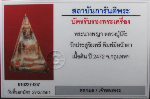 พระนางพญาเนื้อดิน(พิมพ์มีหน้าตา) หลวงปู่โต๊ะ ปี 2472