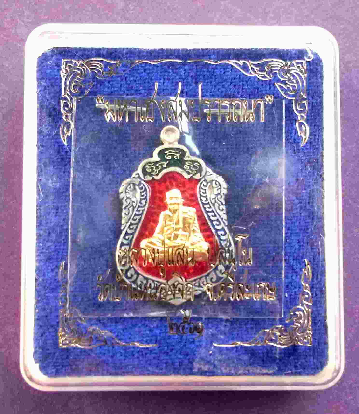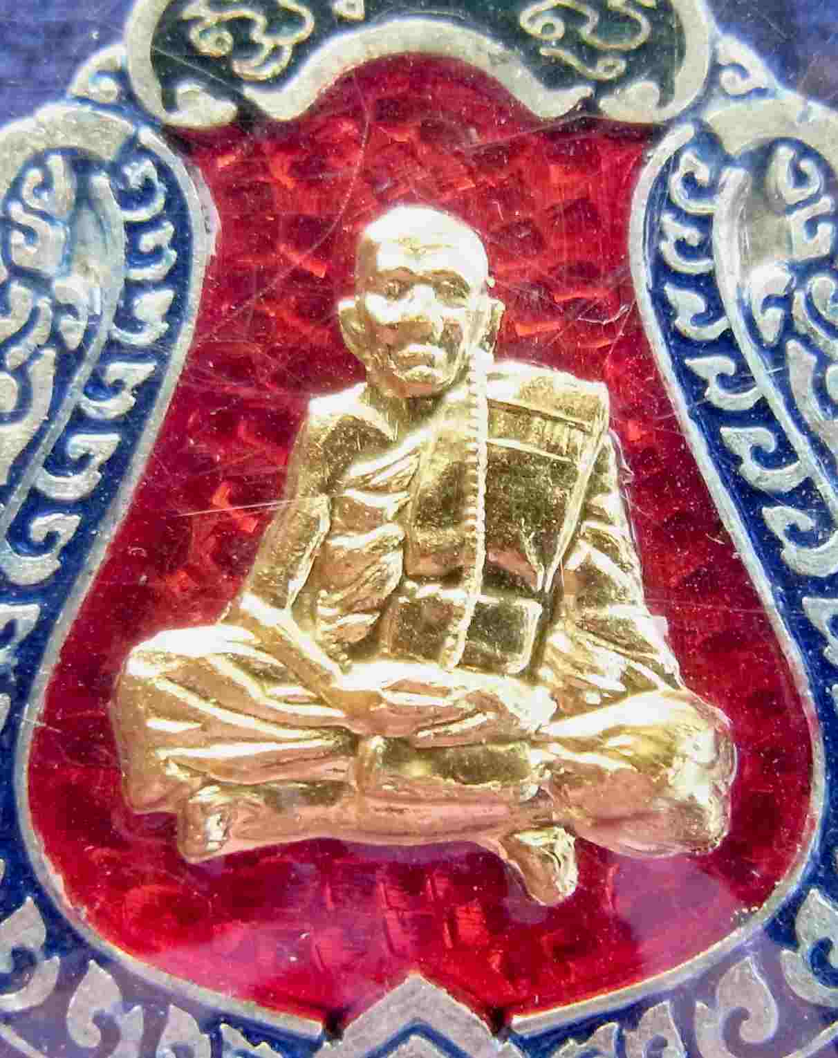 *** เหรียญเสมาเล็ก(จิ๋ว) ลป.แสน วัดบ้านหนองจิก จ.ศรีสะเกษ "รุ่นมหาเฮงสมปรารถนา ปี 2561" (( เนื้อเงินลงยา หน้ากากทองคำ )) No.93 ด้านหลังตอกโค๊ต "พิเศษ" สวยมากพร้อมกล่องเดิม
