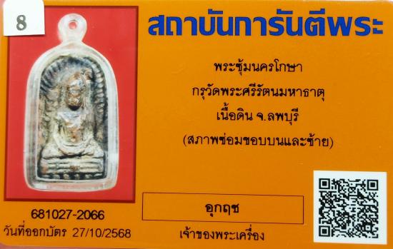 ชื่อพระเครื่อง วัดใจ พระซุ้มนครโกษา กรุวัดพระศรีรัตนมหาธาตุ เนื้อดิน จ.ลพบุรี พร้อมบัตรรับรองจากจีพระ