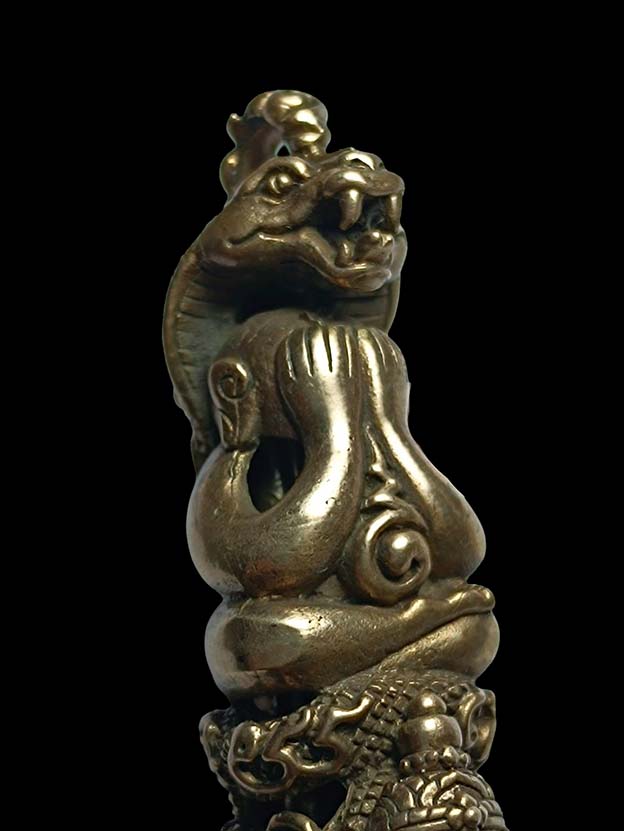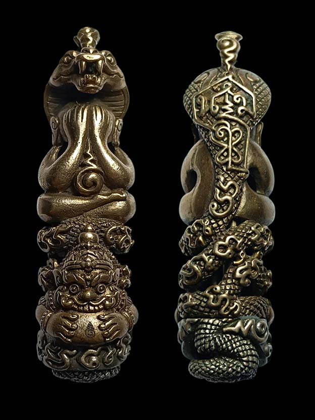 ด้วยพุทธสิป์อันเลิศล้ำแฝงด้วยความเข้มขลัง พระปิดตาพังพระกาฬ แห่งอาณาจักรศรีวิชัยด้านหลังอักขระยันต์นะโมตำรับเขาอ้อ ภายในบรรจุด้วยตะกรุด ทำเป็นกริ่ง เสียงดังไพเราะ ยันต์นะ 108 มหายันต์ มหามงคล อิทธิคุณดีทุกทาง เมตตามหานิยม แคล้วคลาดปลอดภัยค้าขาย โชคลาภ ครอบจักรวาล