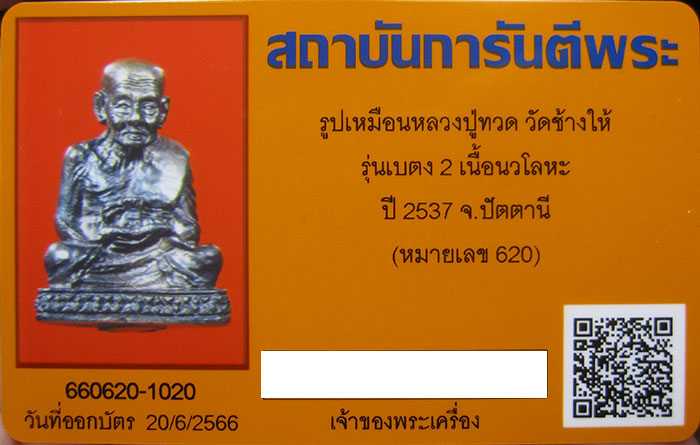 รูปหล่อหลวงปู่ทวด รุ่นเบตง2 เนื้อนวะ สภาพสวย กล่องเดิม พร้อมบัตรรับรอง